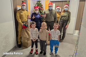 Mundurowi w roli Mikołajów u najmłodszych pacjentów oddziału onkologii